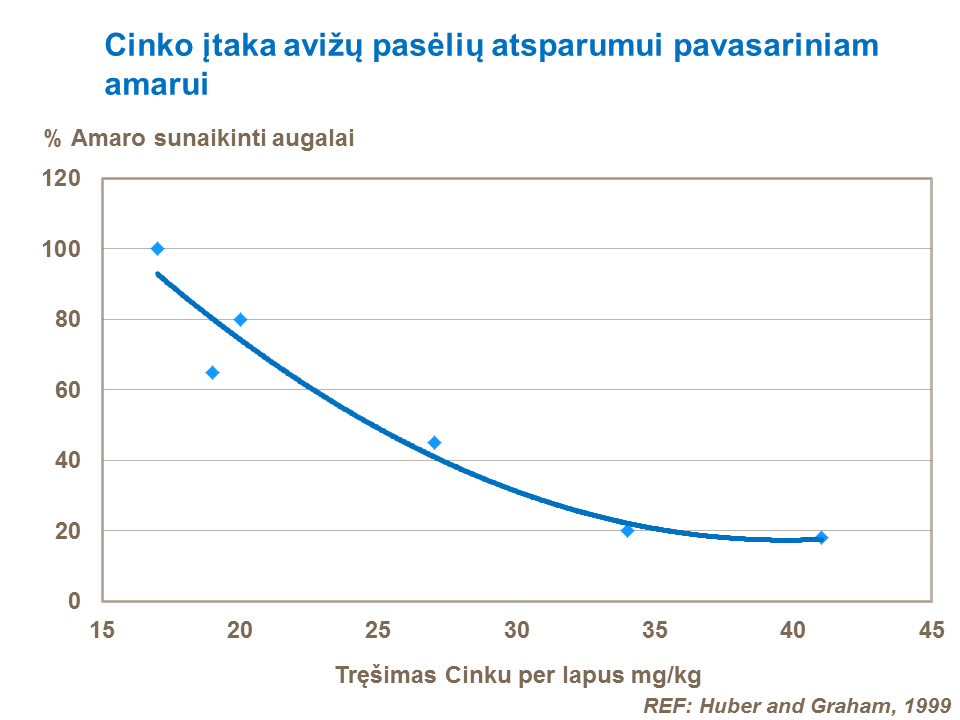 Pasėlių tręšimas cinko trąšomis efektyviai padidina augalų atsparumą javų amaro (Rhizoctonia cerealis) infekcijoms, tuo tarpu vario trūkumas gali būti augalų su kuokeliniais žiedais nevaisingumo priežastis, o tuščiose grūdų užuomazgų vietose formuojasi paprastosios skalsės židiniai. Nors paprastai, avižų pasėliams paprastosios skalsės nebūdingos.