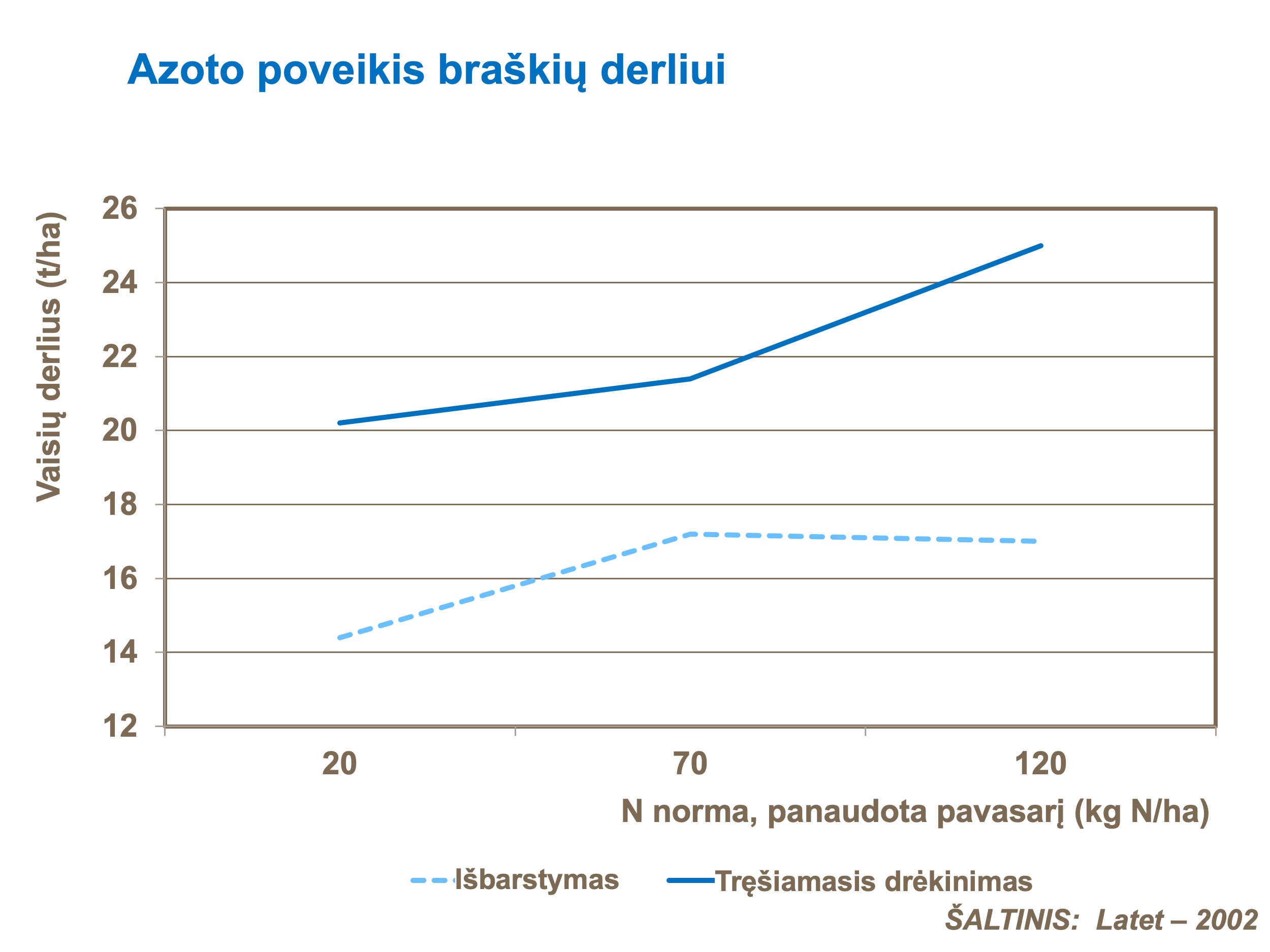 Pastovus nedidelis N kiekis, naudojamas drėkinimo metu, yra kur kas veiksmingesnis, nei vienos N dozės išbarstymas.