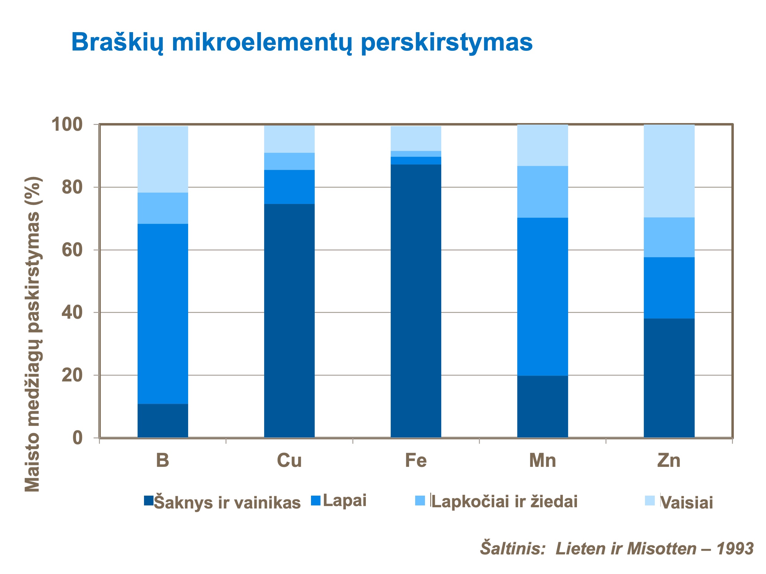 Bandymai rodo, kad kalcis padidina uogų tvirtumą ir kokybės išsilaikymą.