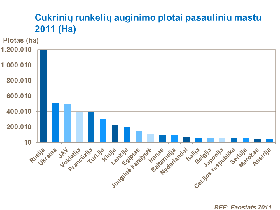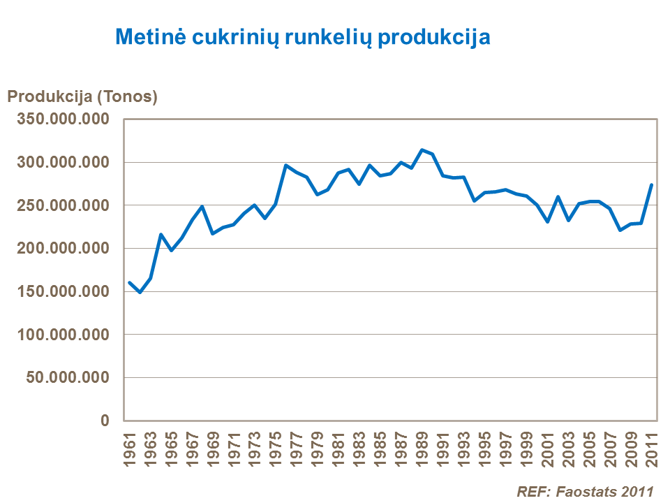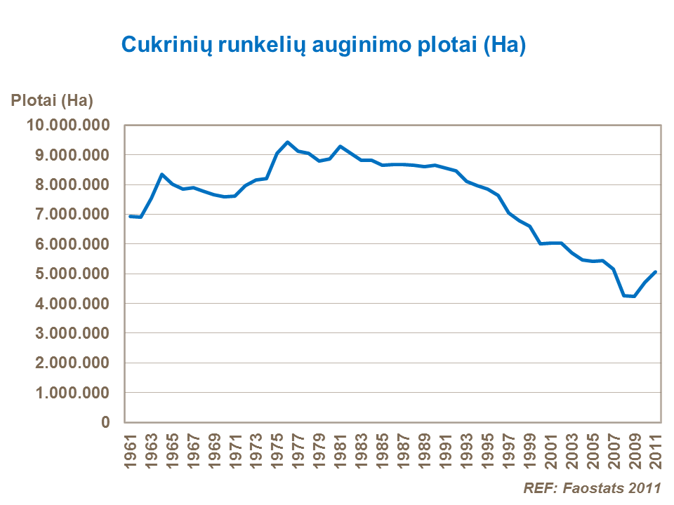 Cukrinių runkelių pasėlių plotai turi tendenciją mažėti ir, vertinant 1961-jų metų duomenimis, dabartiniu metu jie sudaro 73%.