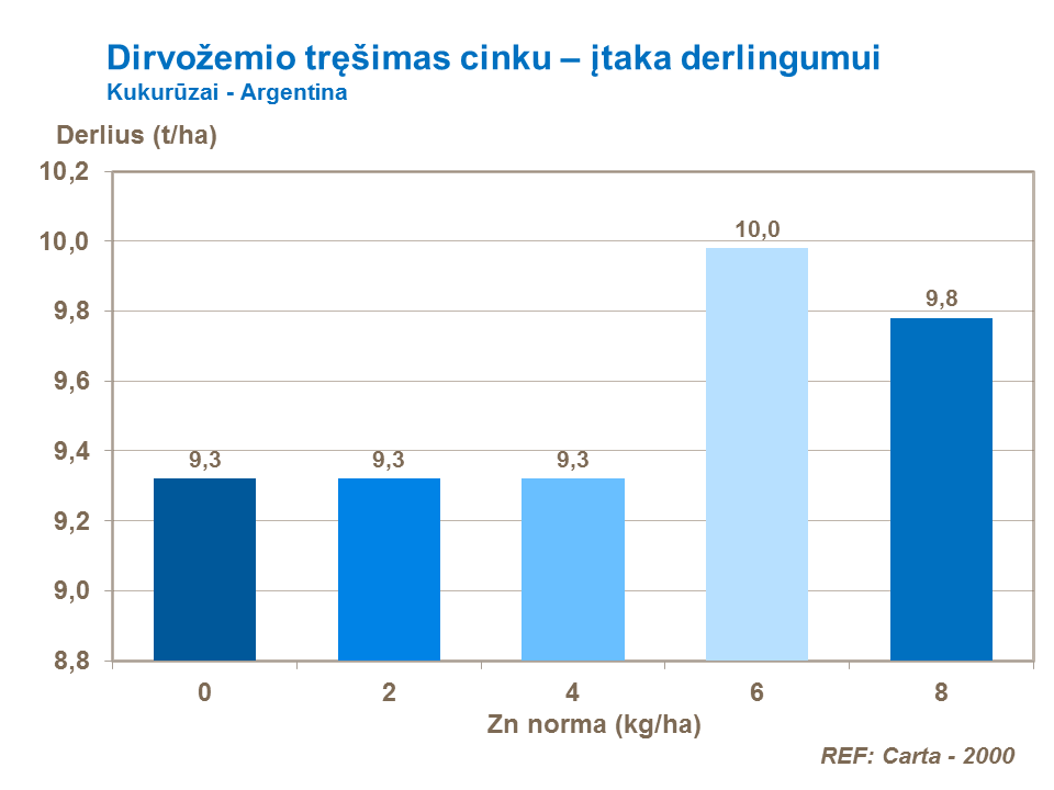 Kaip rodo daugelio atliktų tyrimų rezultatai, cinkas, dėl operatyvaus ir efektyvaus poveikio augalams, labiausiai įtakoja pasėlių derlingumą. Labai stiprus ir efektyvus poveikis pasireiškia pasėliams, kai cinku apdorojamos sėklos, kadangi cinko poveikyje anksti pradeda vystytis šaknų sistema, taip pat, cinkas skatina ūglių / stiebo augimą ir lapų vystymąsi. Tačiau, rezultatai rodo, kad efektyvesnis poveikis pasėlių derlingumui būna tada, kai jie tręšiami lapų trąšomis su cinku.