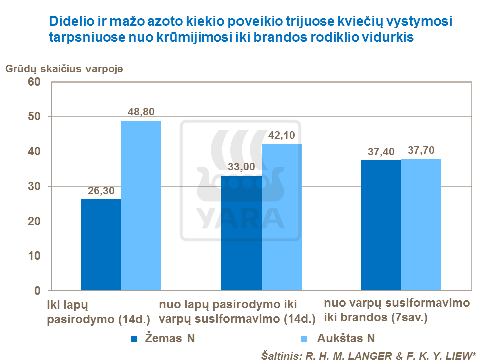 Tręšimo azoto trąšomis laikas yra svarbus veiksnys, kadangi būsimų grūdų užuomazgos formuojasi ankstyvoje fazėje nuo krūmijimosi iki žydėjimo pradžios.