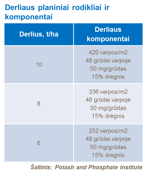 Grūdų formavimosi, pildymosi ir brendimo tarpsniais kviečių augalams yra reikalingi sveiki žali lapai, kad bręstantys grūdai būtų nepertraukiamai aprūpinami fotosintezės produktais. Siekiant maksimaliai padidinti produktyvių varpų skaičių, naudinga pasėlius patręšti. Azoto kiekį lapuose reikia išsaugoti iki žydėjimo tarpsnio pradžios. Be to, reikia atminti, kad optimalaus derlingumo užtikrinimui yra reikalingi tokios maisto medžiagos kaip fosfatai, magnis ir boras.