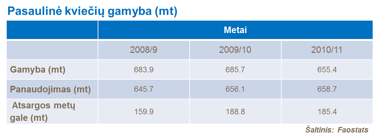 Kinija yra stambiausia kviečių augintoja pasaulyje. Atsargos metų gale šioje šalyje sudaro apie 130 mln. tonų; antrą vietą užima Indija su 90 mln. tonų rodikliu, o trečioje vietoje yra JAV ir Rusijos Federacija su 60 mln. tonų atsargų metų gale kiekvienoje iš šių šalių.